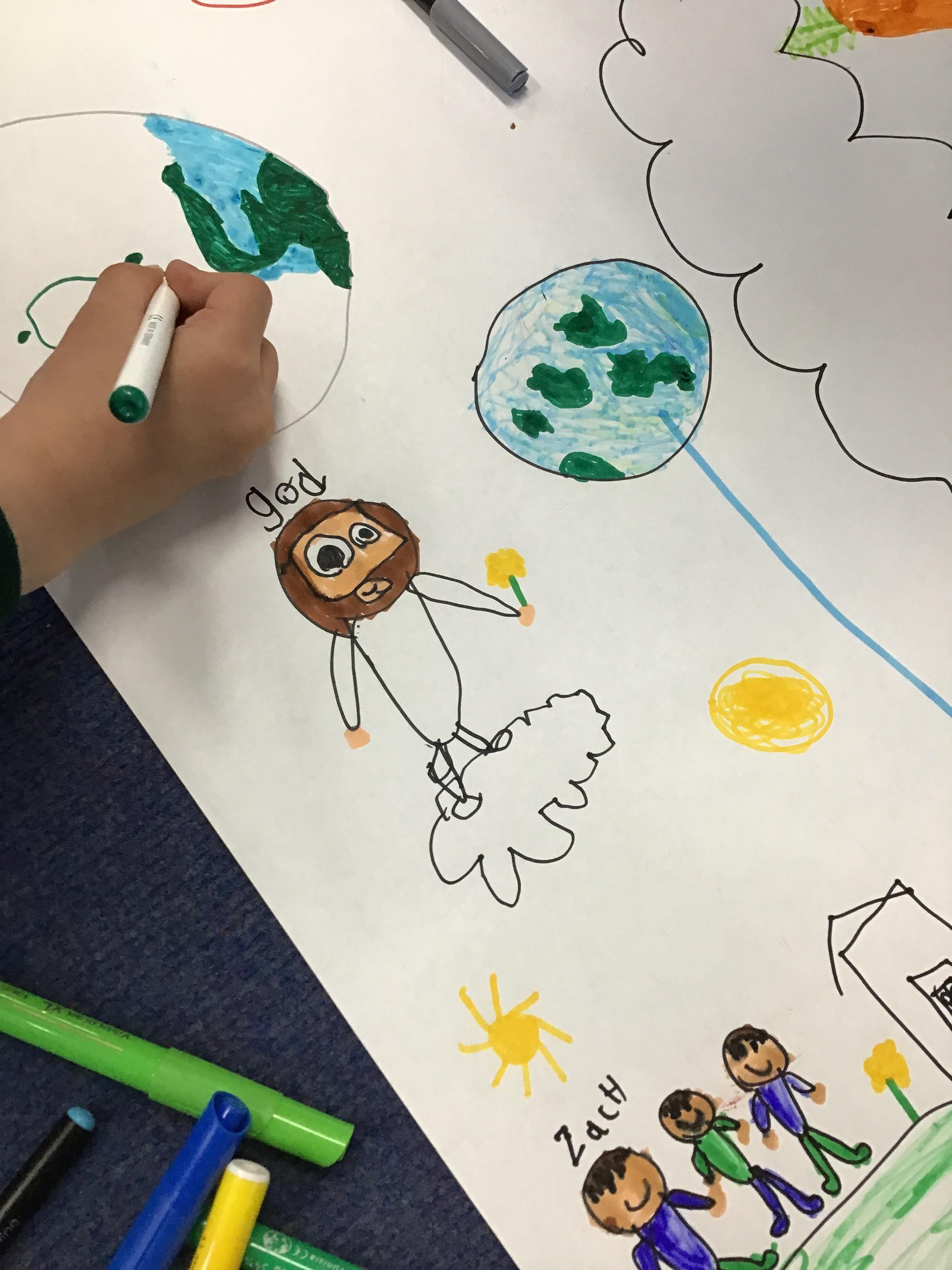We follow the Agreed Syllabus of Nottinghamshire Education Committee and seek to ensure all children’s faith and heritage are present in our curriculum. RE allows us to explore big questions with our children and develop moral values and respect for each other. We aim to foster a deeper understanding of important themes such as belonging. RE is taught discretely and in addition whole school assemblies occur daily.